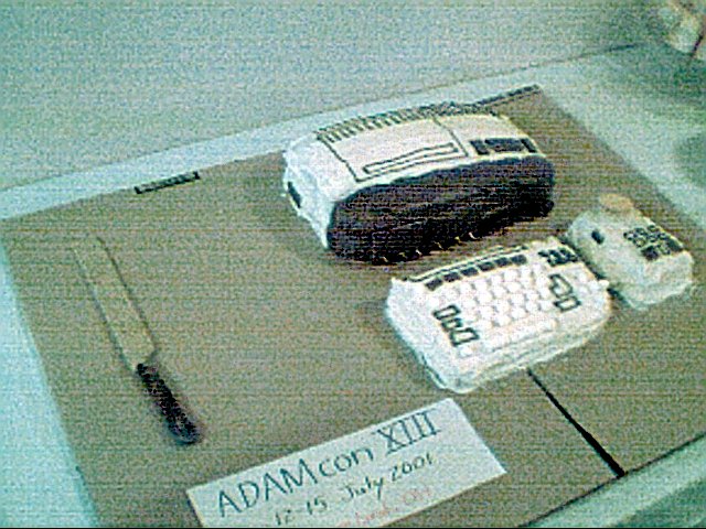 ![]() Banquet Cake | At the banquet, we were treated to a very special cake. It was iced in the form of a Coleco Adam. Rich Drushel says that this is the second time that he has tried this. It was quite tasty. |