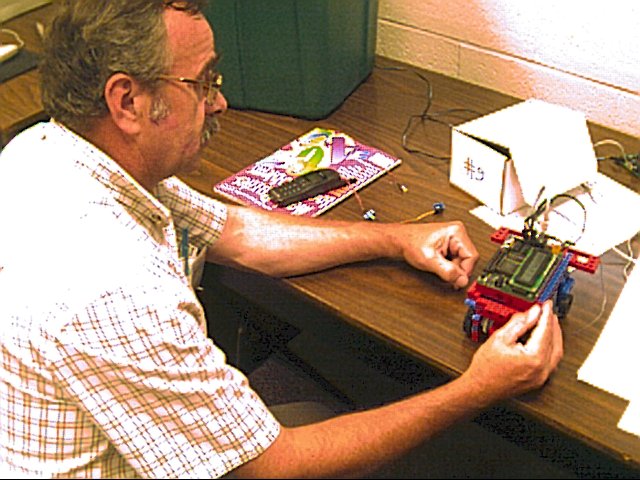 ![]() Robot lab at CWRU | Here is the finished robot our team made. Jill did the programming, and Murray and I assembled it. |